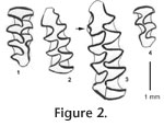 Among many first lower molars of M. pennsylvanicus recovered from Golliher B, there were three demonstrating an unusual morphology. In these specimens, a prism fold filled with cement is present (Figure 2). This feature is characteristic of Mimomys species with rooted molars. Rather than representing an ancient population preserving archaic characters, we suspect these specimens represent individuals in which part of the ancestral epigenetic system became functional once again.