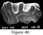 37) is triangular with a strong parastyle connected labially to the paracone. A strong protoloph connects the paracone and the protocone while a weaker metaloph connects the protocone to the metacone.