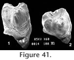 The lower dentition is represented by two M1s and two M2s. The M1s are subquadrate with partially closed trigonid basins (Figure 38). The mesostylid is very weak or absent with a relatively wide valley between the metaconid and the entoconid. This condition differs from species of Spermophilus such as S. shotwelli Black or S. argonautus