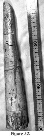 The gomphothere, Rhynchotherium sp. cf. R. edensis, is very similar to R. edensis from the late Hemphillian Mt. Eden Local Fauna (Frick 1933). The shorter enamel bands on the lower tusks suggest that Rhynchotherium from Warren may be slightly more advanced than R. edensis although the two adult lower tusks are from a single individual and intra-population variability of this character is unknown.