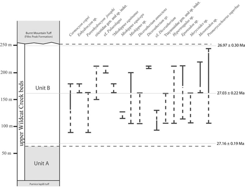 Stratigraphic distribution of the Wildcat Creek local fauna.