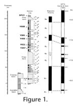 Barry et al. (2002) presented the Dhok Saira paleomagnetic log, the tool for dating deposits in the Hasnot area (Figure 1). This section near Hasnot correlates to chrons C4n.2n through C3An.2n of the geomagnetic polarity time scale. Interpolation assigns ages for localities resolvable at the scale of 105 years. Useful dates are thereby assigned to localities Y457, Y921, Y456, Y581, Y908, and DP13. Previous work assigned approximate ages for DP8 (late Gauss Chron,