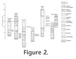 Figure 2. Note that the rate of sediment accumulation in the Little Hogback section is lower than in the other sections as it is farther from the edge of the basin where most of the fossil sites are located. Very thorough search of the lower exposed strata in the area of the Little Hogback section did not locate any identifiable fossils or any sediment that would yield small mammals. See