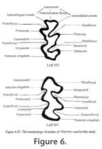Tomida (1987, figure16) except that the stylar cuspule associated with the anteroloph is named as the parastyle for upper molars, and the stylar cuspule associated with the anterolophid in the lower molars is named as the metastylid.