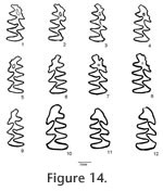 Figure 6. Since the occlusal view changes considerably at different level of wear, the degrees of wear are used for description as follows: unworn—no wear and roots not yet developed; slightly worn—wear is less than one-third of original crown, and roots are starting to develop but very short; moderately worn—crown is about one-third to half of original height, and roots are open; worn—crown is lower than half of original height, and roots are closed.