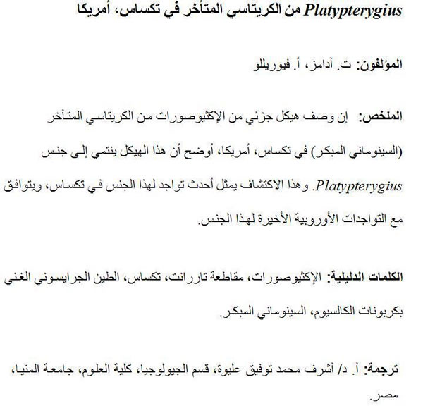 (Upper Cretaceous: Early Cenomanian, ~97MA) from Tarrant County, Texas. Prior to