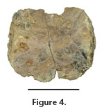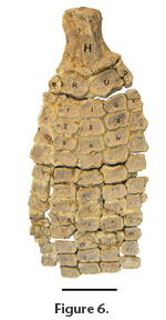 Vertebrae. The atlas-axis complex shows complete fusion, with the atlantal intercentrum fused with the atlas. There is no indication of sutures between the elements. Presacral vertebrae are discoidal, with an average height/length ratio of approximately 3.0 (Table 1). Position of rib facets indicate vertebrae ranging from the cervical to sacral regions. No neural arches are preserved.