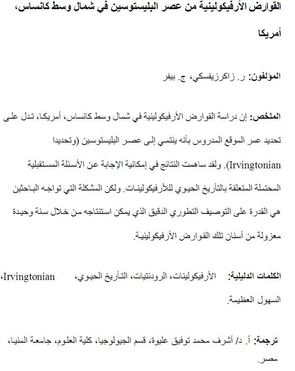 di queste forme indica che il sito è dell’Irvingtoniano e rappresenta
