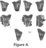 A single complete m4, 58982 (Figure 5.4-5.6) possesses a trigonid similar to that of m2-3. The talonid is narrower than the trigonid and relatively more elongate than in preceding molars. The entoconid is lower and smaller than the hypoconulid.