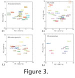 The similarity between left and right molars may also be seen in the PC scatterplots (Figure 3 and