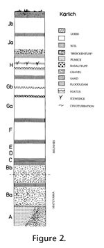 Paleomagnetic fluctuations are recorded in the lower part of the section. The Matuyama/Brunhes boundary with an age of about 783,000 years is located in Unit Kä Bb (Brunnacker et al. 1976). Reversed paleomagnetic signals, possibly correlative with the Jaramillo event, were recovered from the sediments of Unit Kä A (Boenigk et al. 1974;