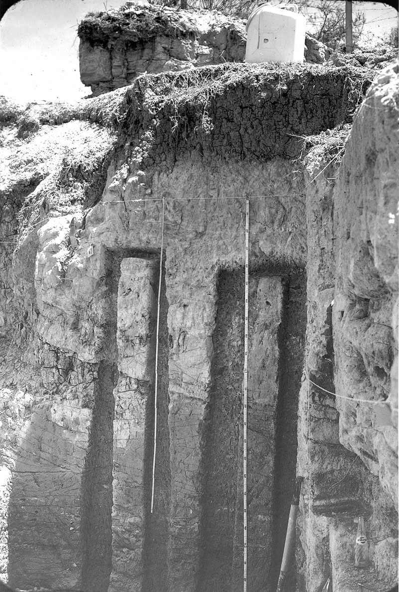 FIGURE 12. Steen-McIntyre photo, 1973, showing monoliths WSU73V16 and WSU73V17 between grid points 10.5 B and 11D.