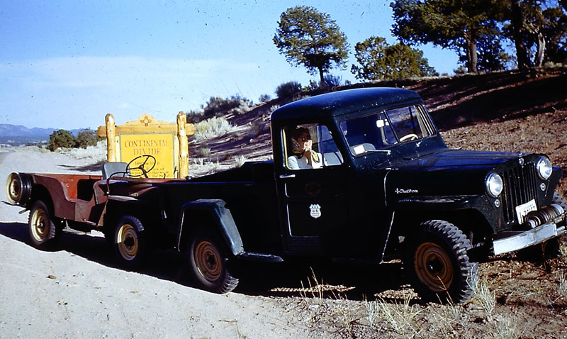 FIGURE 10. Nancy Repenning off the road on the continental divide in 1949. The vehicles were dedicated to the mapping project on the Navajo and Hopi Reservations. The Repenning's honeymoon was spent, in part, driving them from Detroit to Arizona. Photo by Charles Repenning. Repenning Family collection.
