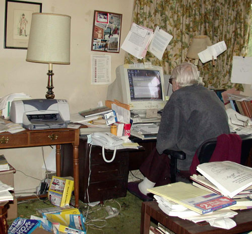 FIGURE 16. Rep at work in his home office in 2004. The framed print behind the lamp is one of a collection of war souvenirs 'liberated' from a German Luftwaffe base. Photo by Oldřich Fejfar. Jeanne Forsberg collection.