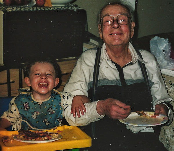 FIGURE 21. Rep and his grandson at Rep's 80th birthday celebration, August 2002. Jeanne Forsberg collection.