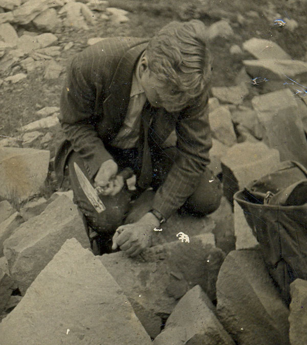 FIGURE 3. A teenaged Charles Repenning splitting rocks in search of fossils. Photo by Ann Carrel Rowland. Date unknown. Repenning Family collection.
