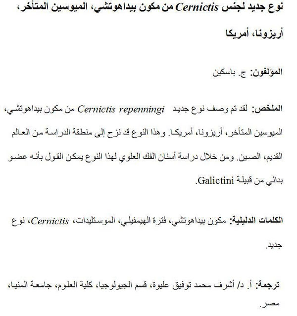 supérieure de ce matériel indique que Cernictis est membre primitif de la