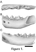 Holotype. UALP 8079, left mandibular fragment with p2-m1, alveolus for the m2.