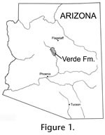 Twenter (1962) mentioned some of the first vertebrate fossils known from the Verde Formation. At one locality east of Cottonwood on the south flank of House Mountain, Yavapai County (Figure 2,