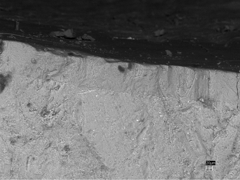 FIGURE 4. Photograph of the wear surface on a hadrosaur tooth from Alberta (TMM 42315-1D). Compare to wear in Figure 5.