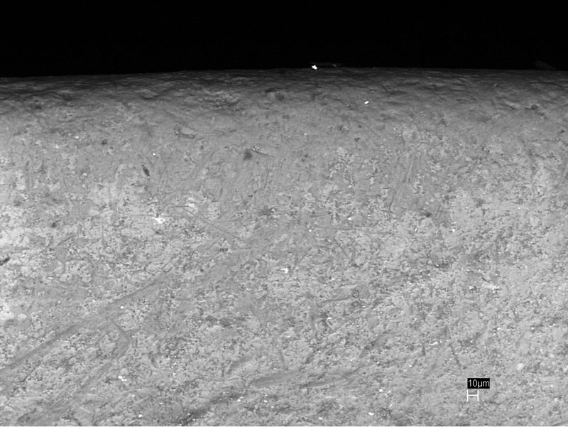 FIGURE 7. Photograph of the wear surface on a hadrosaur tooth from the Prince Creek Formation, Alaska (DMNH 22141). This wear surface is dentine only and shows an abundance of shallow scratches.