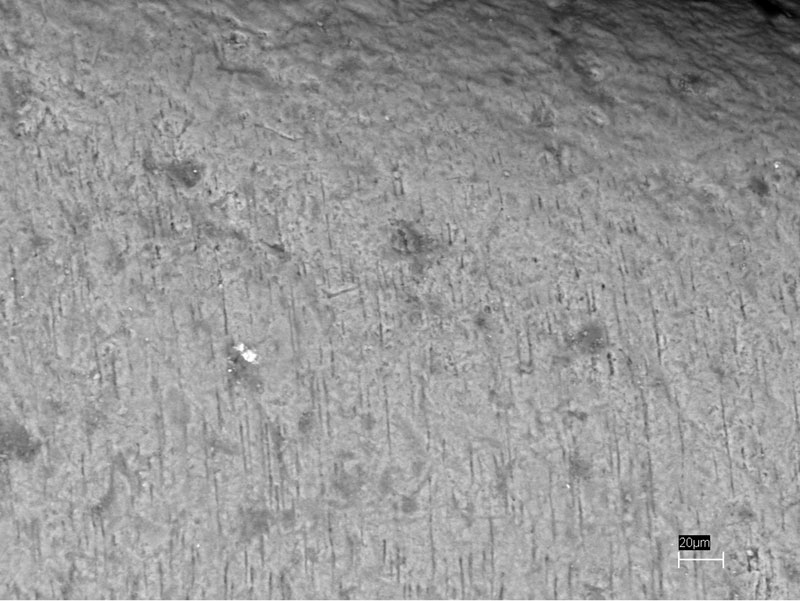 FIGURE 9. Photograph of the wear surface on a hadrosaur tooth from the Aguja Formation, Texas (TMM 43057-439D).
