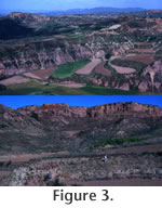 The general strike of the nearly flat Yushe sediments is northeast-southwest, age decreasing to the northwest. Immediately east and southeast of Nan Zhuang Gou are older Gaozhuang deposits assigned to Chron C3n2r, about 4.7 Ma. East of Nan Zhuang Gou (Figure 4 and