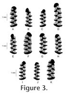 Figure 3J). A single specimen (SCCAR-115) of the common five-triangle form has a unique morphology where T4 is bifurcated (Figure 3K). This morphology was previously noted on specimens of Microtus pinetorum from late Quaternary deposits in Iowa (Jans 1993;